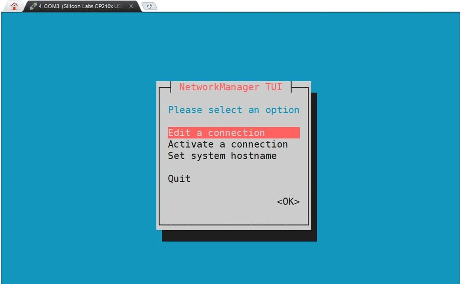 在命令行中输入nmtui命令打开wifi连接的界面。